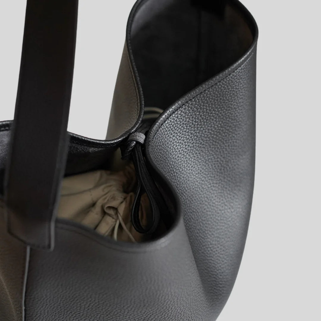 Classic bucket bag in supple leather. Minimal hardware. Maximum ease.