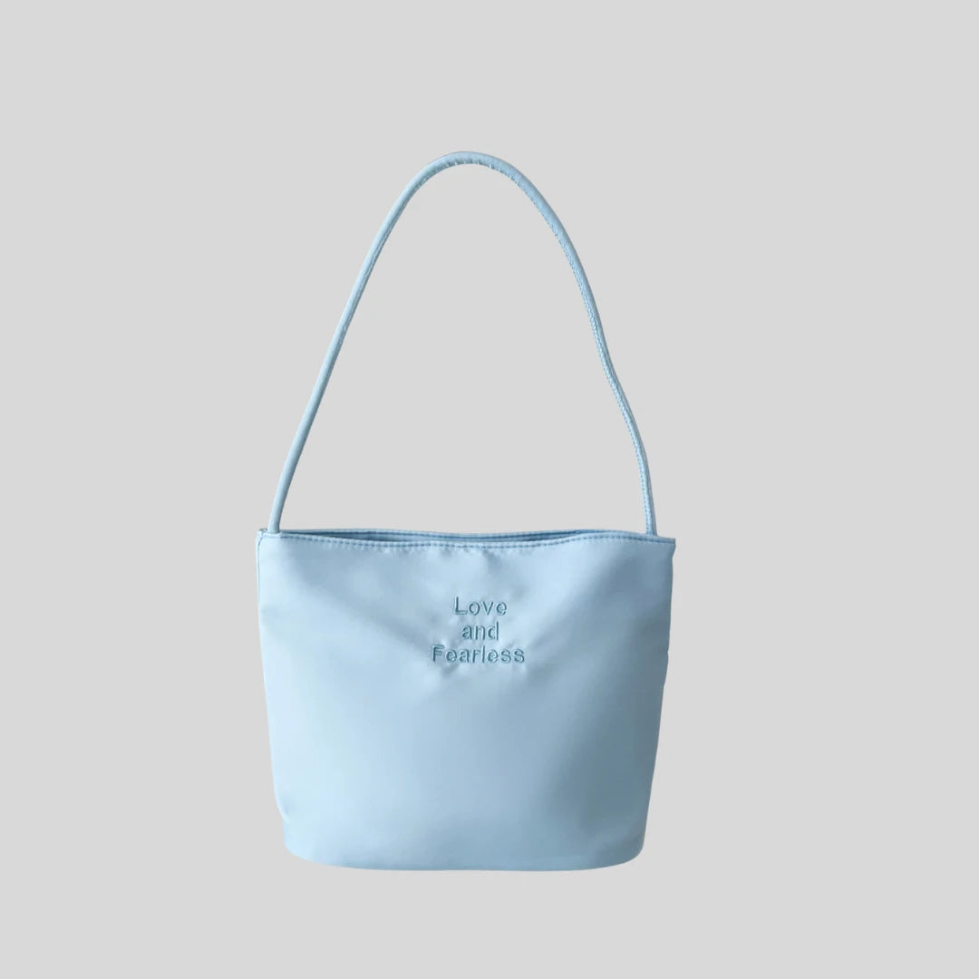 Soft energy, strong message. The Fearless features embossed positive affirmation in dreamy baby blue. Crafted in premium vegan leather with a pillowy-soft finish that feels as good as it looks.