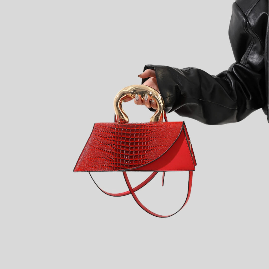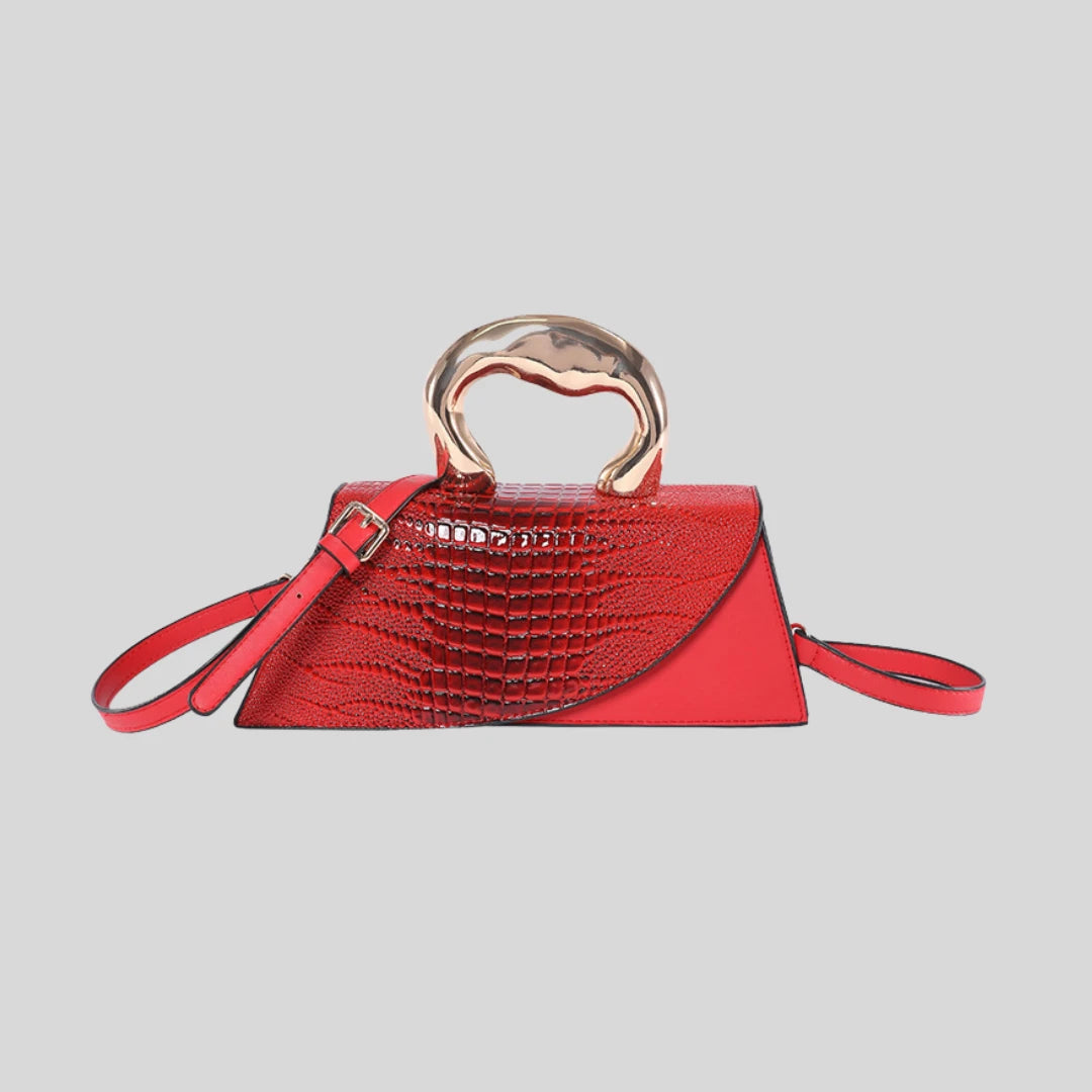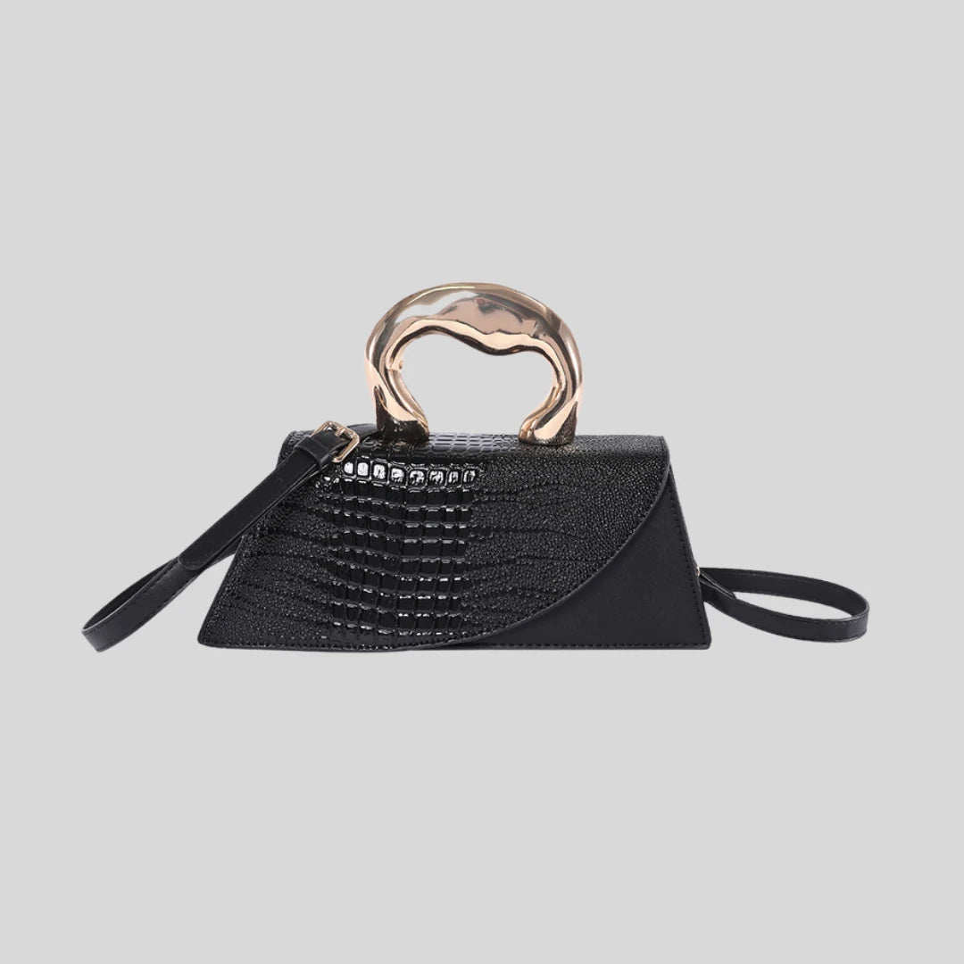 Wearable art, refined. The Sculpture features an iconic sculptural rose gold handle with mixed textures—croc embossed meets smooth leather. Crafted in premium vegan leather for guilt-free luxury that turns heads.